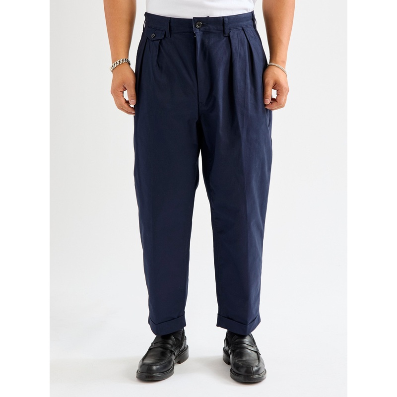 2-Pleat Twill Trousers in Navy