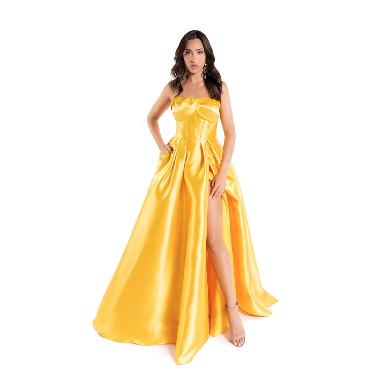Laze in classic subtlety as you pull off this ethereal dress designed by Abby Paris 90185. It comes with a square neckline and pleated details on the bust. It has a corset bodice and side pockets. The sleeveless design is enhanced by the skinny shoulder straps. The natural waistline follows a full-length skirt with a flowy silhouette.