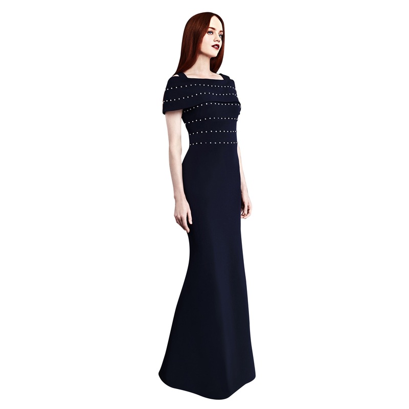 Dazzling drape-sleeved formal gown with crystal sparkle by Daymor