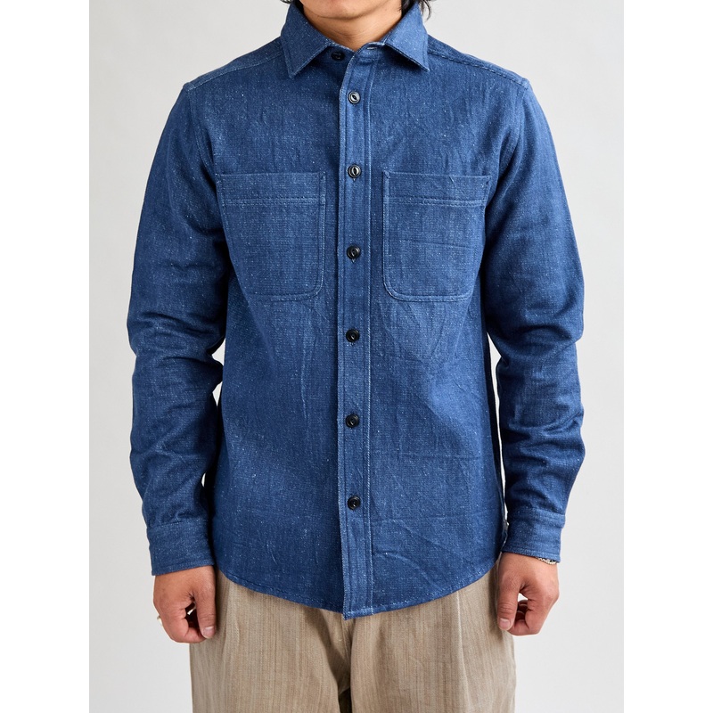 - The Ames Workshirt from Indi + Ash takes its inspiration from the classic Big Mac shirt, cut in a slightly oversized fit that can be layered and worn like a jacket. Using their custom-made 2×1 handwoven denim, the shirt is hefty enough to last forever, but still soft and comfortable for everyday wear. This iteration features a rope dyed indigo warp and an undyed weft. Finished with kala cotton side vents with hand embroidery logo, two large patch pockets, and large corozo buttons.