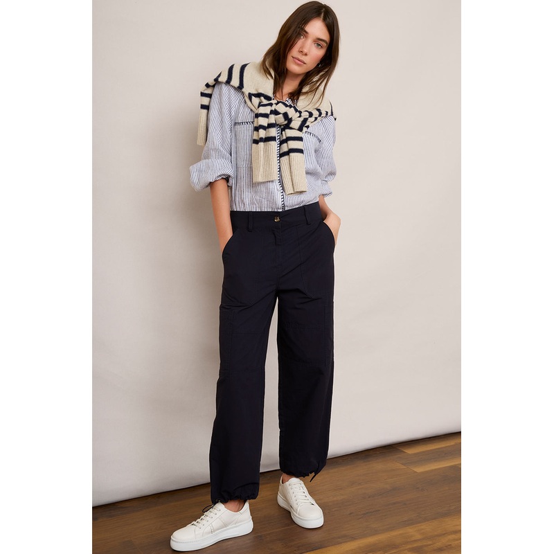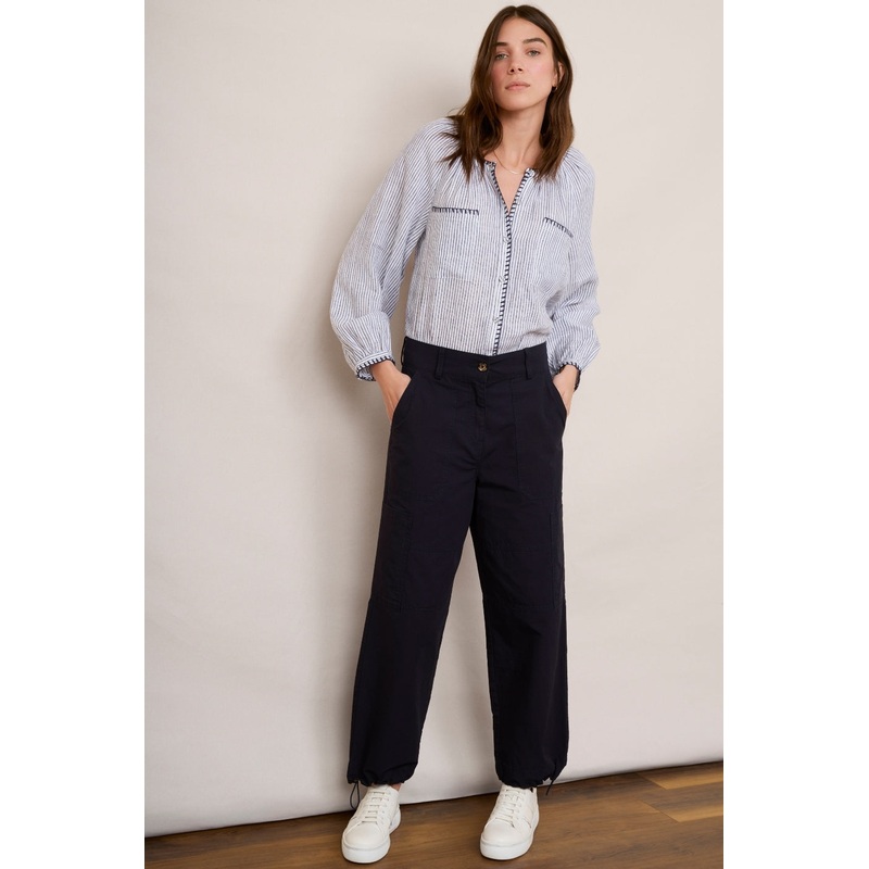 - Flattering straight leg cargo trousers in a deep midnight blue.