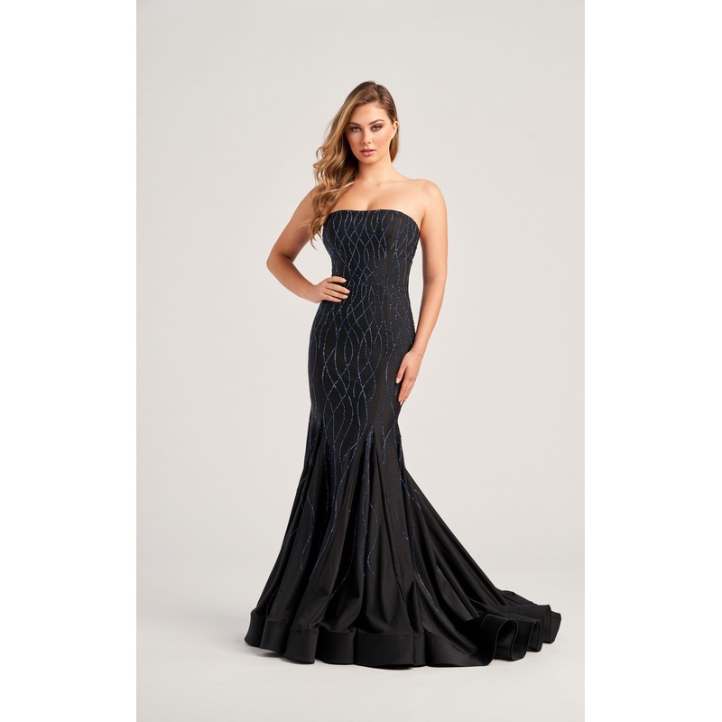 Turn every gaze as you walk in this tempting CL5106 Colette creation. The strapless gown has a straight-across neckline and a tie-up back. Flaunting an intricate play of sequins, this gown is the epitome of perfection. Its natural waistline slips into a mermaid skirt to highlight your natural curves perfectly. Ending with a horsehair hemline and a sweep train, this gown ensures a flawless feel.