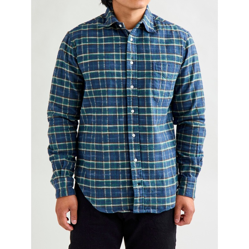 Men's Vintage Check Lapel Single Breasted Flap Pocket Loose Long Sleeve Shirt Jacket MTA1755G9M Coffee