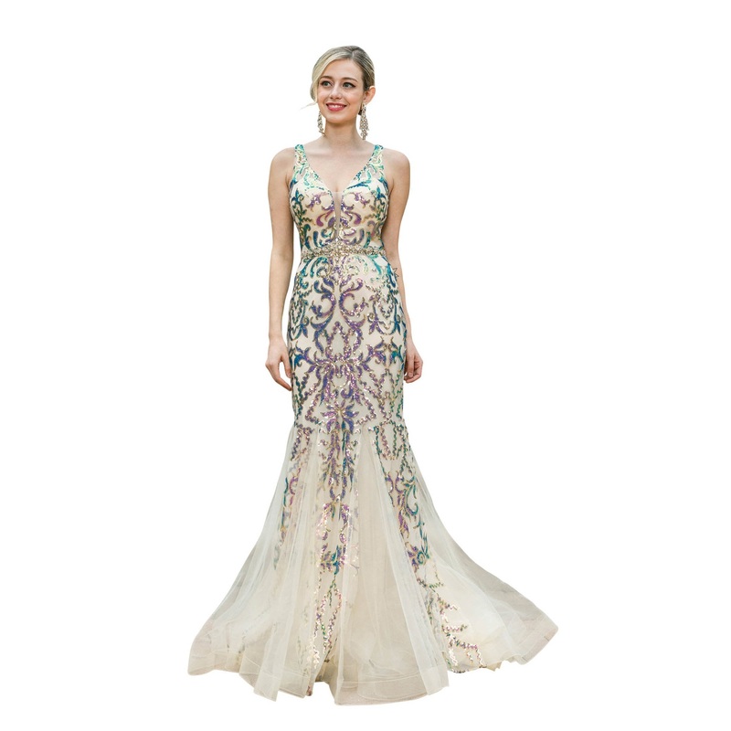Look absolutely stunning in Dancing Queen 4213 Dress. This pretty piece features a fit & flare silhouette and glittering accents. The sleeveless bodice has a v-neck neckline and a natural waist.