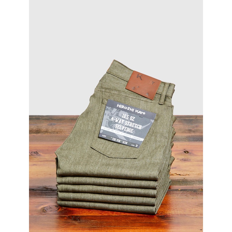“Dark Green” 10.5oz Stretch Selvedge Denim – Pen Slim