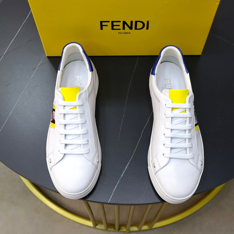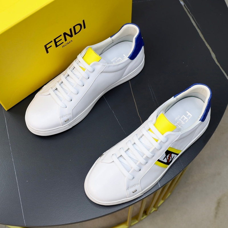 The sleek low-top silhouette is set on a durable embossed rubber sole, offering stability, cushioning, and long-lasting wear. The side is detailed with Fendis signature FF motif, emphasizing iconic brand recognition and timeless style.