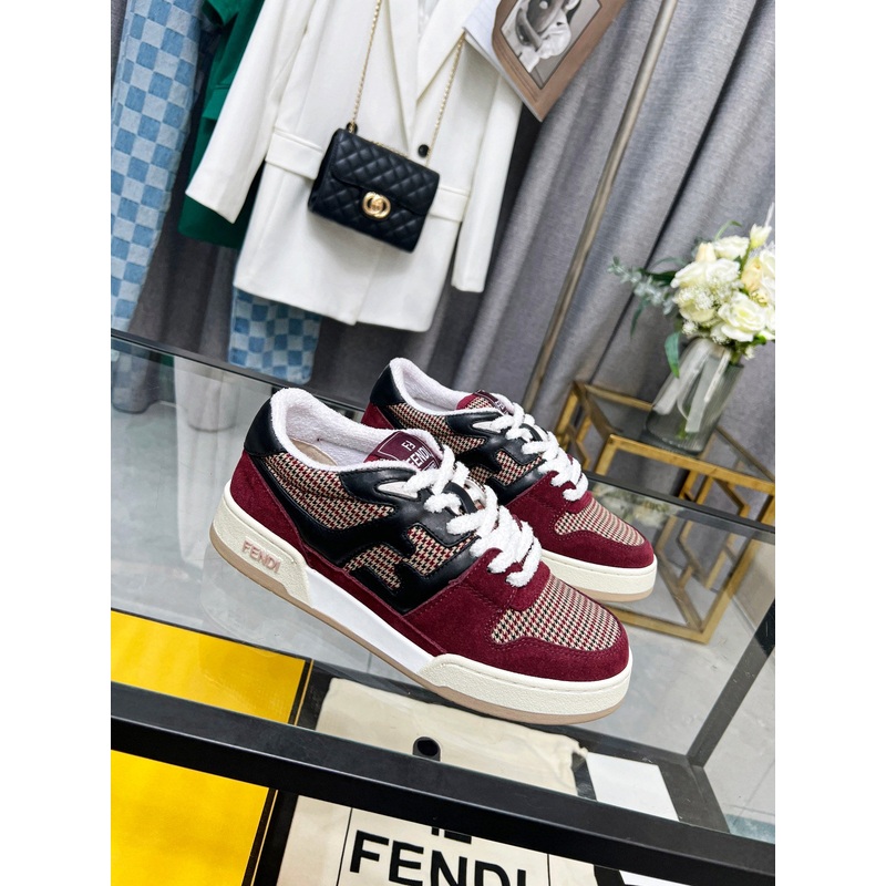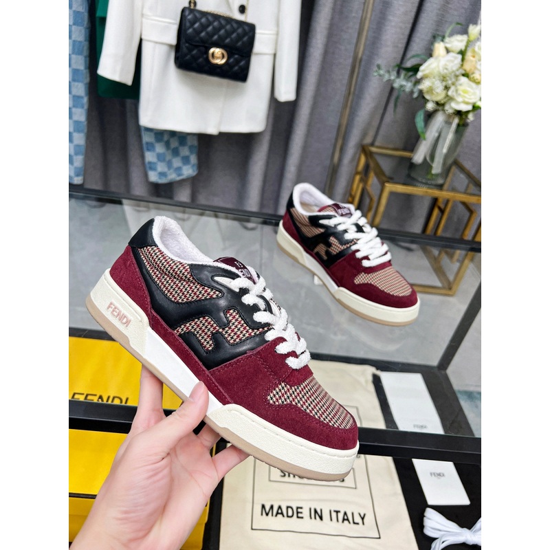 The sleek low-top silhouette is set on a durable embossed rubber sole, offering stability, cushioning, and long-lasting wear. The side is detailed with Fendis signature FF motif, emphasizing iconic brand recognition and timeless style.