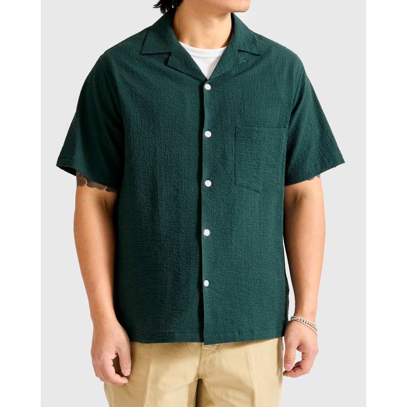 • The Flam shirt from Portuguese Flannel is acasual Hawaiian-style shirt made using fabric from the brand’s storied archive. Making use of alightweight geometricseersucker fabric, this shirt isperfect for warm summer days.Fitted with a single chest pocket, and cut in a relaxed silhouette with a straight hem.