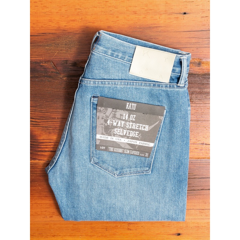 “Geddy” 14oz Washed Indigo Stretch Selvedge Denim – Scissors Slim Tapered