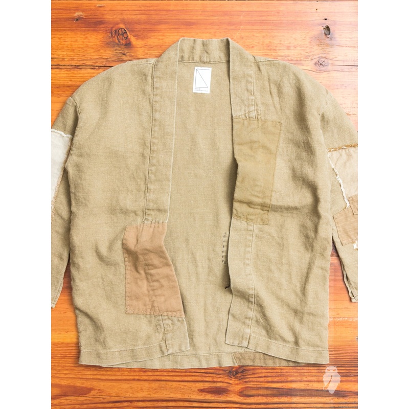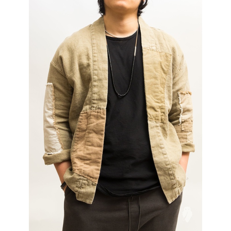 • The signature Haori Shirt from SOULIVE is the brand’s contemporary take on the traditional Japanese haori jacket. The “Harvesty” installments are constructed using a breathable distressed linen fabric that has been patched and repaired using assorted fabrics from the Japan Blue Co. archive.