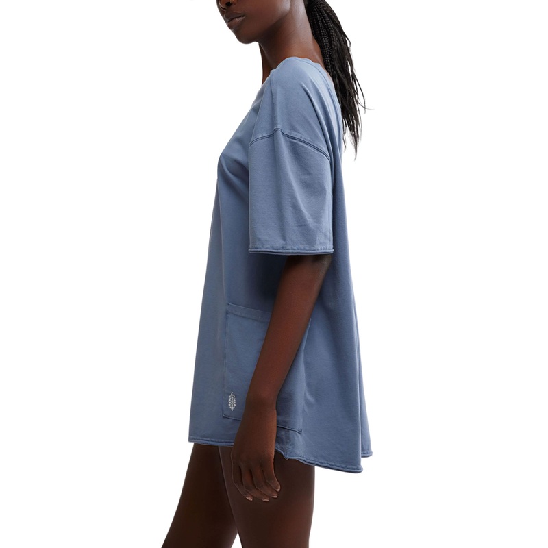 Chill in the Hot Shot Tee Romper designed with a soft-touch, shapeless silhouette with pockets, a V-shaped back, and ribbed trim thats all about laid-back luxe for your post-workout wind-down. Dropped sleeves and patch pocket detailing add a playful touch, making this romper your off-duty essential.