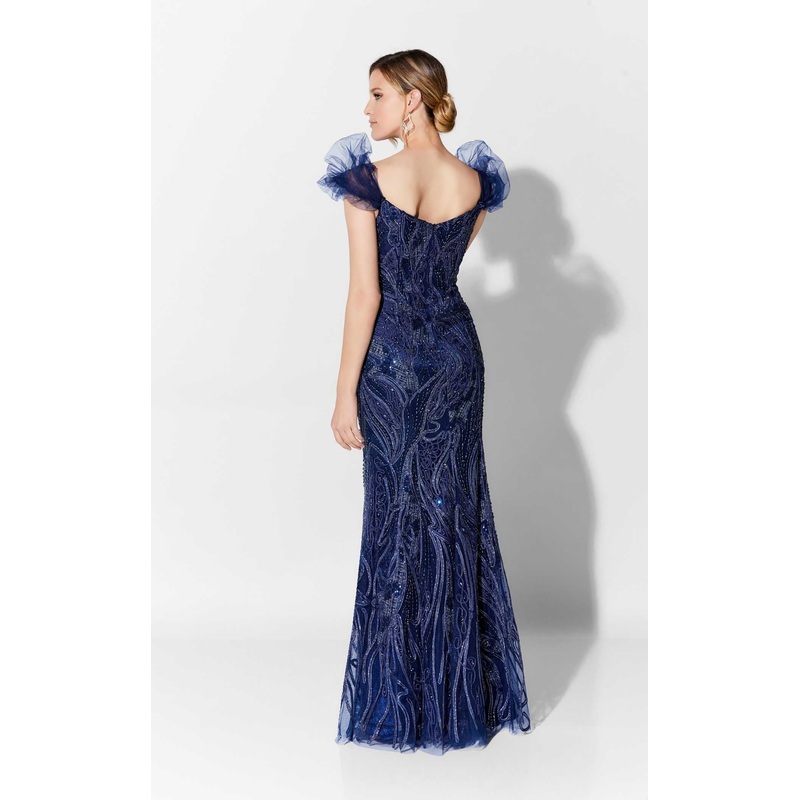 Tulle Layered Puff Sleeves Embroidered Sheath Silhouette by Ivonne D