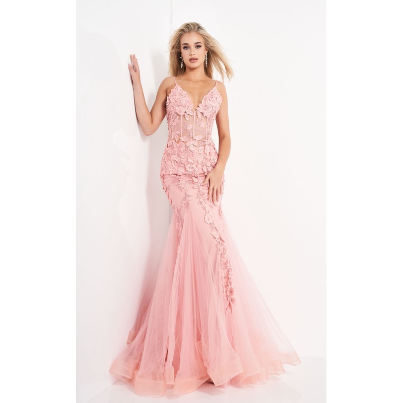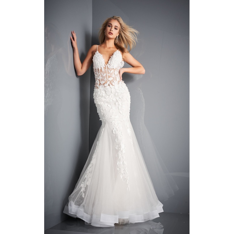 Look pretty in Jovani 02841 Dress. This wonderful item features a fit & flare silhouette and lace & embroidery. The sleeveless bodice has a v-neck neckline and a natural waist.
