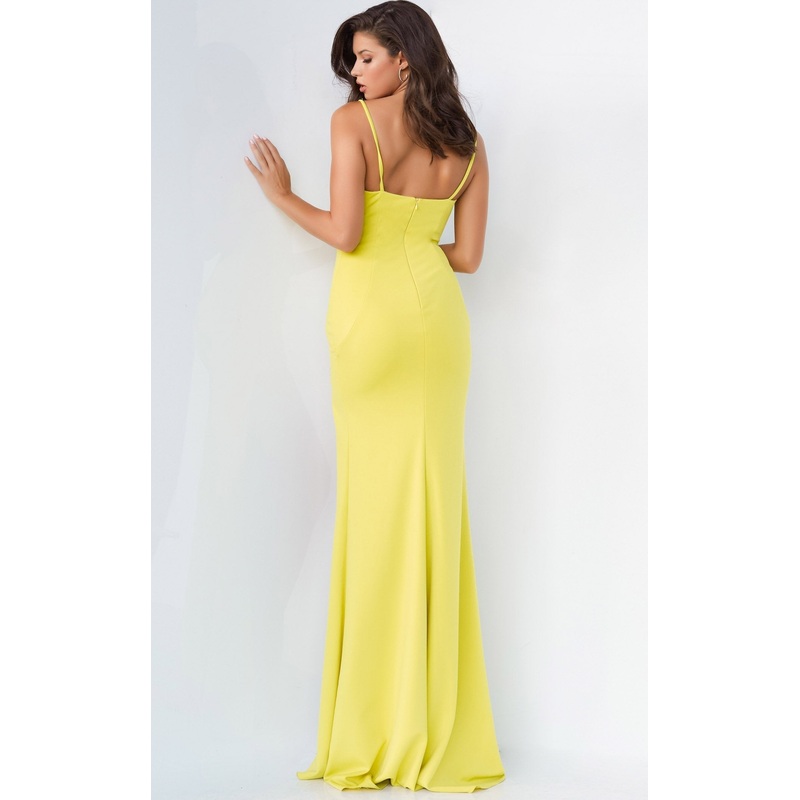 Steal the spotlight wearing this jaw-dropping dress by Jovani 07272BG. The dress showcases beautiful jewels embellishments along with the sweetheart neckline and spaghetti straps for a glamorous look. The deep back comes with a zipper. The skirt with its sheath silhouette features a high slit and finishes off with a sweep train. Add this gorgeous outfit to your collection.