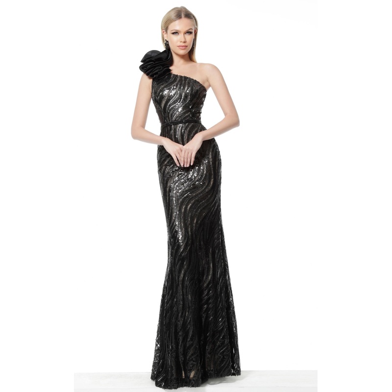 Asymmetrical Sequined Evening Gown by Jovani