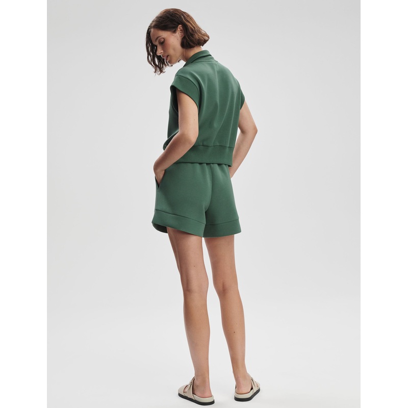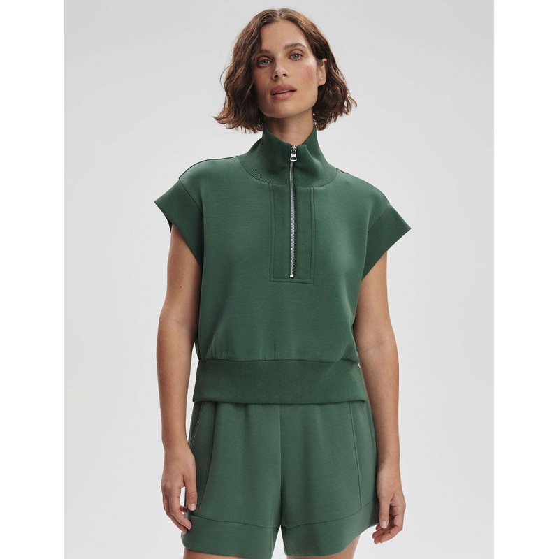 Take your days off to the next level with the Kelly Half Zip Sweat, featuring DoubleSoft fabric and flat ribbed trims for added texture. The half-zip neckline, capped sleeves, and mini side seam splits create a relaxed, hip-length silhouette, perfect for layering or wearing solo.