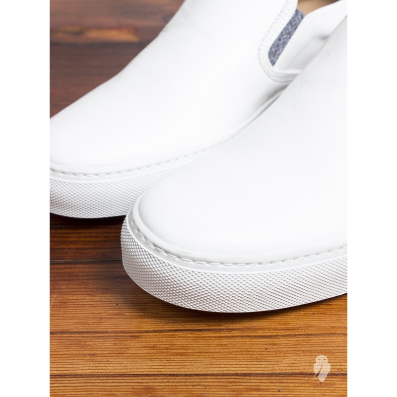 • Made from premium Italian leather, the Slip-On Sneaker from wings + horns is the brand’s signature take on the luxury slip-on. The calfskin leather is both durable and soft, and provides a substantial amount of texture for the shoe. The sneaker features a convenient slip-on design, removable leather insole, and is fitted with the highest quality Margom rubber sole from Italy. Built for a clean, low-profile silhouette.