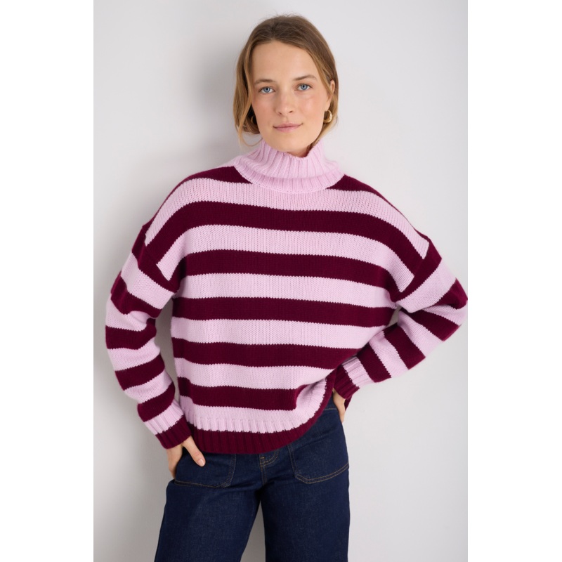 Liana Chunky Funnel Neck Jumper – Deep Fig/Blossom Pink Stripe