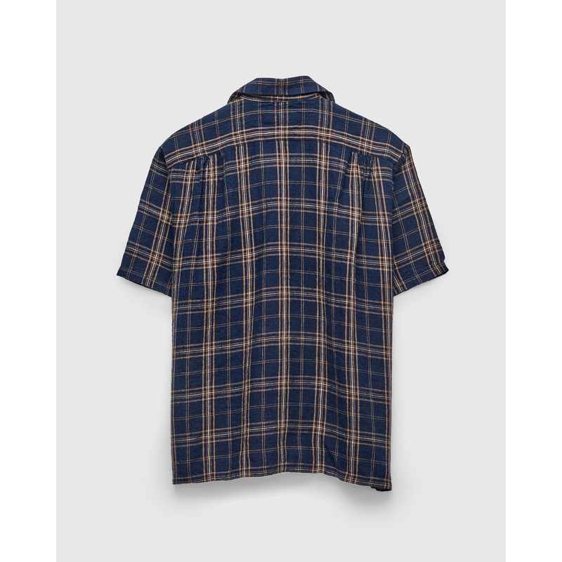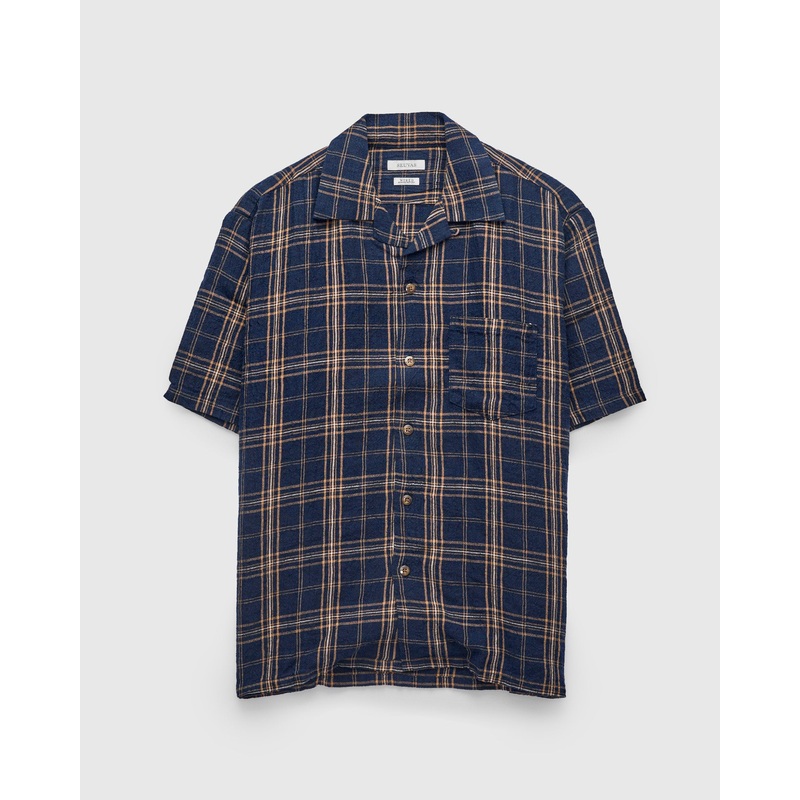 • Made for the intense Southern Japanese summers, this open-collar short sleeve shirt is crafted using a lightweight and highly breathable linen fabric. Custom for Seuvas, this plain-weave linen fabric features a textured surface and woven plaid pattern. The shirt comes finished with a reinforced button-down placket, straight hem, and utility pocket at the chest.