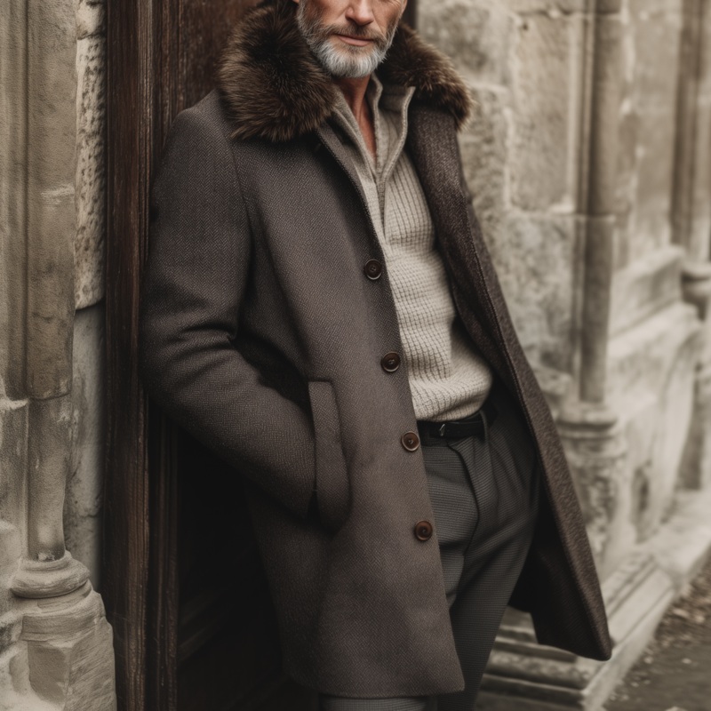 The Mens Classic Vintage Faux Herringbone Thigh-Length Coat (Includes Removable Faux Fur Collar) blends a timeless retro aesthetic with contemporary craftsmanship. With its thigh-length design, removable collar, and herringbone texture, this coat provides a versatile layer suitable for formal, smart-casual, and everyday outerwear, delivering warmth, durability, and a distinctive, enduring edge.