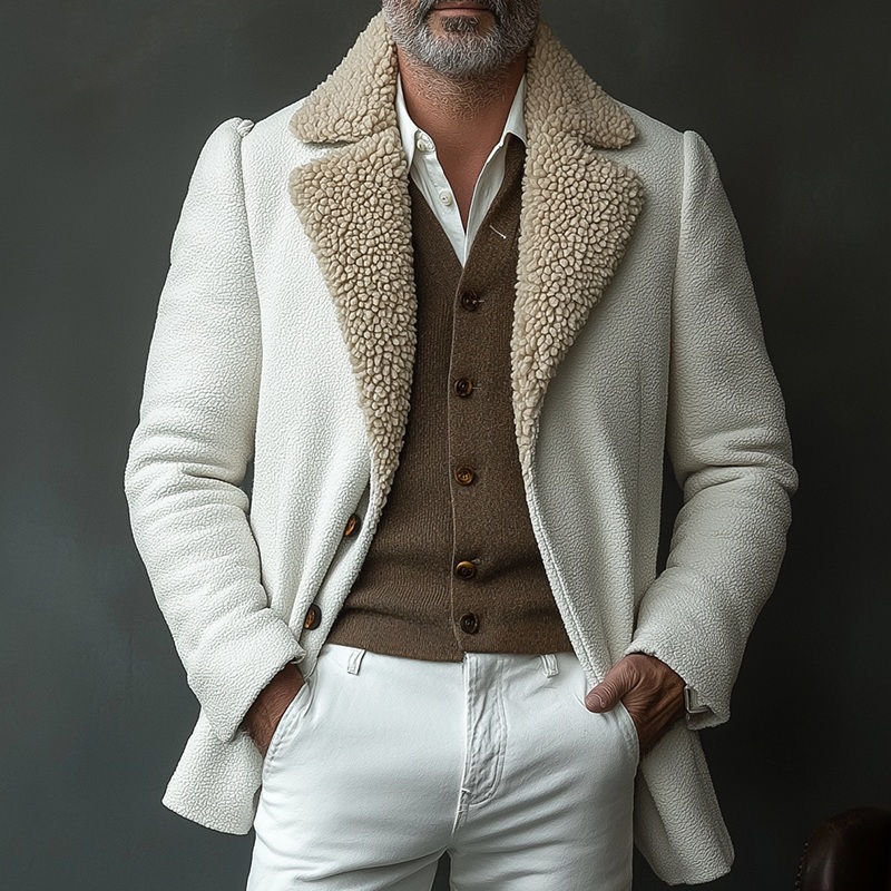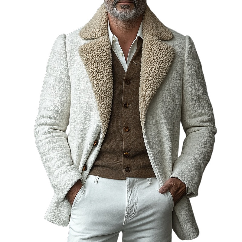 Men’s Retro Casual German Fleece Lined Jacket MTA0603K3TO White