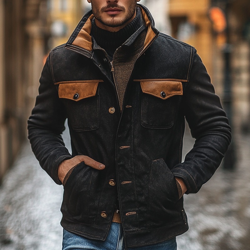 This Men’s Retro Stitching PU Lapel Jacket embraces a bold, timeless style with its distinct contrasting color design. Perfect for those who appreciate a mix of vintage and modern flair, this jacket offers a unique way to express individuality and excellent fashion sense.