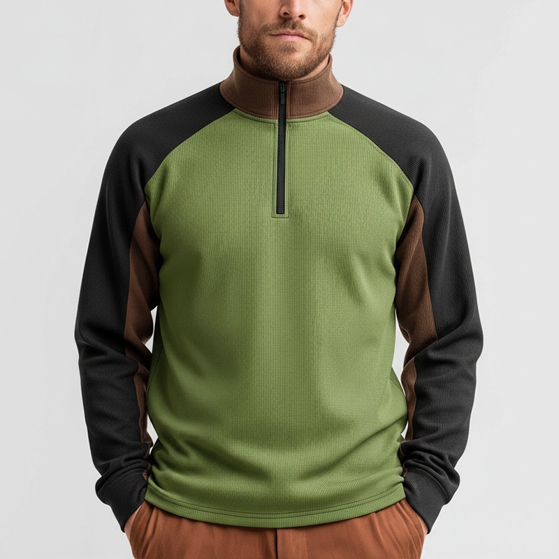 Men's Vintage Contrast Striped Breathable Knit Zipper Stand Collar Loose Pullover Sweater MTA2841H3M Red