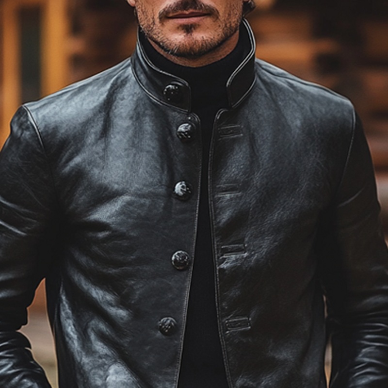 The Men’s Slim-fit Stand-up Collar Solid Color PU Button Jacket is a must-have item that blends comfort with style effortlessly. Its versatile nature ensures it can be seamlessly integrated into any wardrobe, making it an excellent addition to your collection.