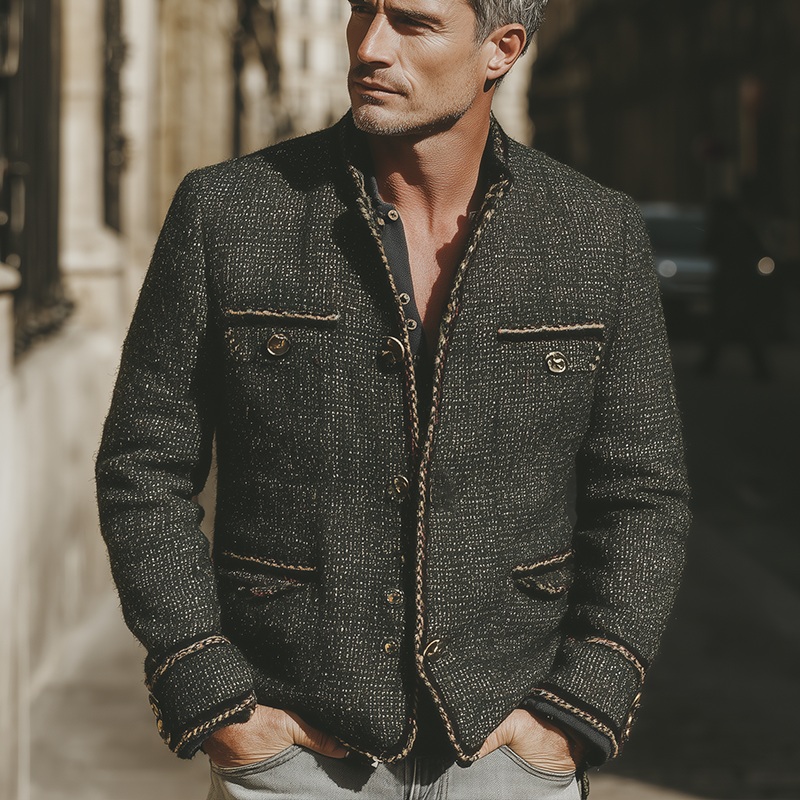 Herringbone Pattern: The classic herringbone weave gives this jacket a touch of refinement and elegance, making it suitable for both casual and semi-formal occasions.