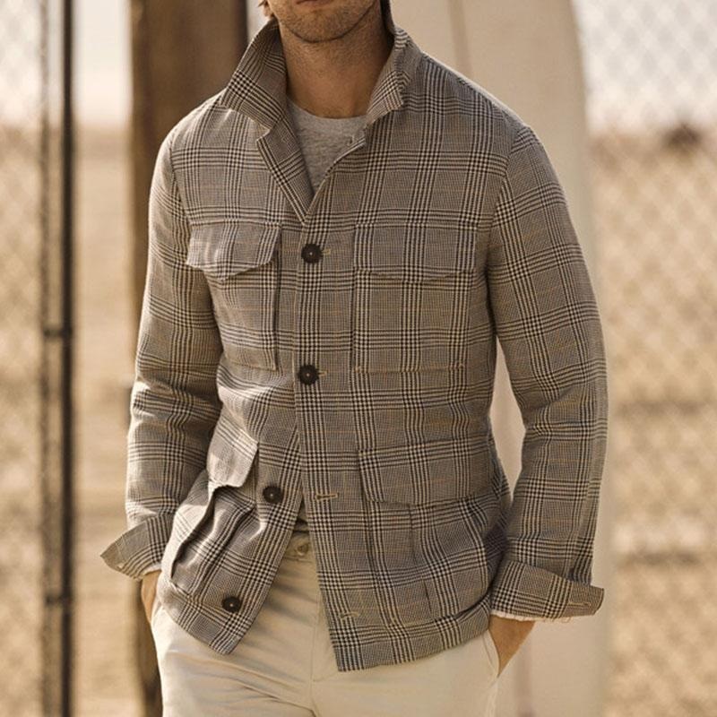 Product Name: Men’s Vintage Classic Check Multi Pocket Single Breasted Lapel Long Sleeve Jacket