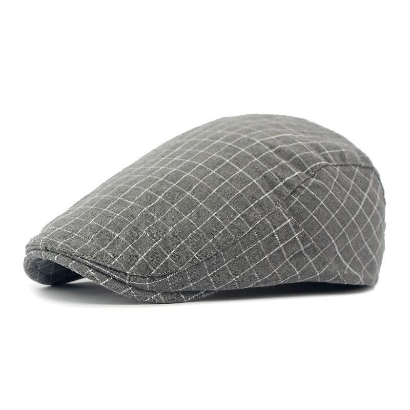 Men’s Vintage Plaid Cotton Peaked Cap 62447851M Gray