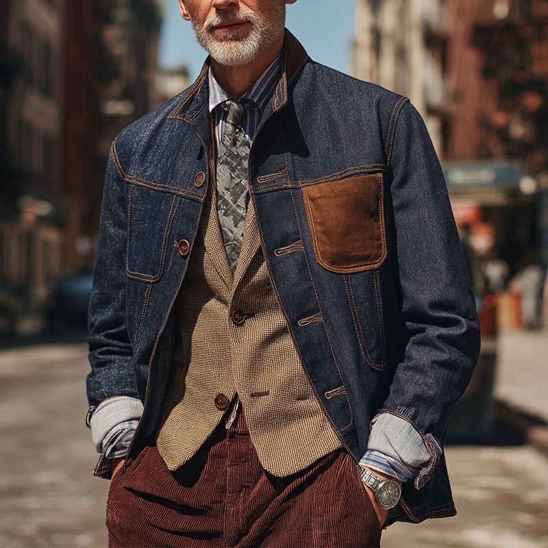 The Men’s Vintage Washed Distressed Denim Faux Suede Casual Formal Jacket is a must-have for anyone looking to bridge the gap between casual comfort and formal style. Its distinctive design and high-quality materials ensure it remains a staple in your wardrobe for years to come.