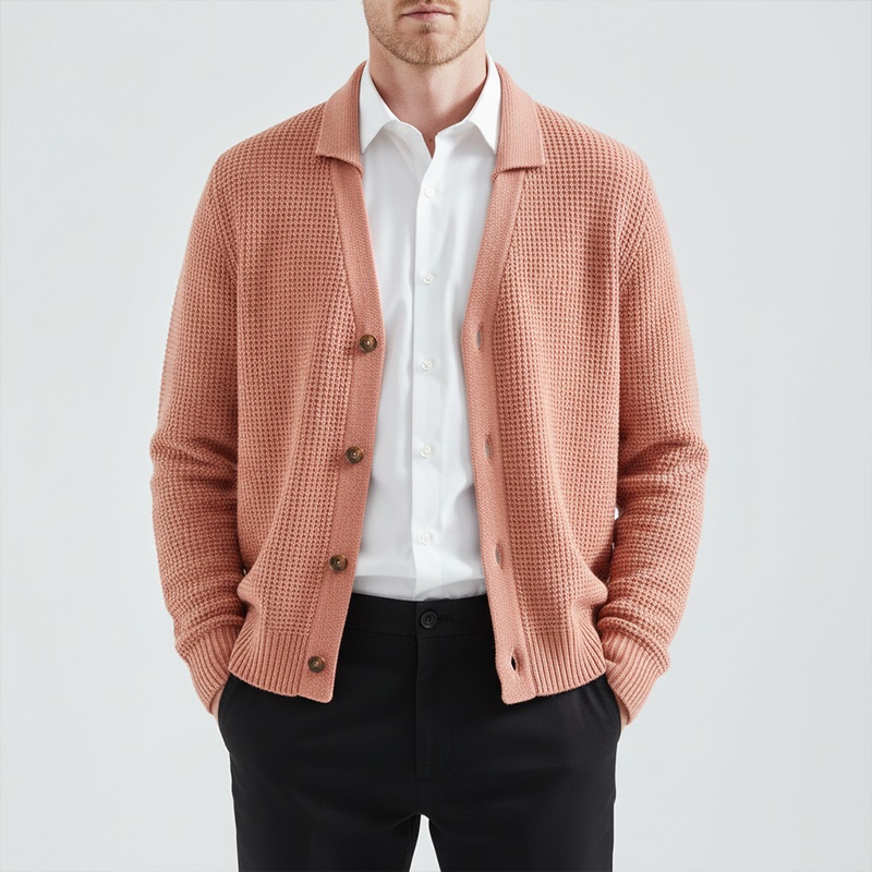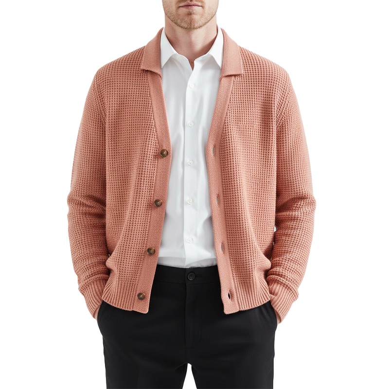 Men’s Winter Fashion Waffle Texture Cotton Knit Cardigan MTA2067J1P Pink