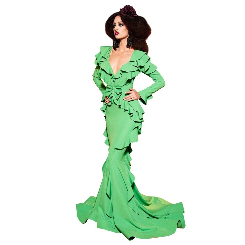 Long-Sleeved Ruffled Evening Gown by MNM Couture