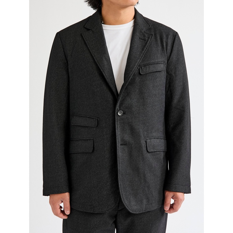 • The Andover Jacket is a signature design from Engineered Garments. Crafted from an printed wool herringbone fabric, the jacket features a lined interior and a classic two-button placket, making it a versatile piece that can be dressed up or down. It sports a classic silhouette with multiple pockets at the hip, waist, and interior, along with a classic spread-collar placket at the front.