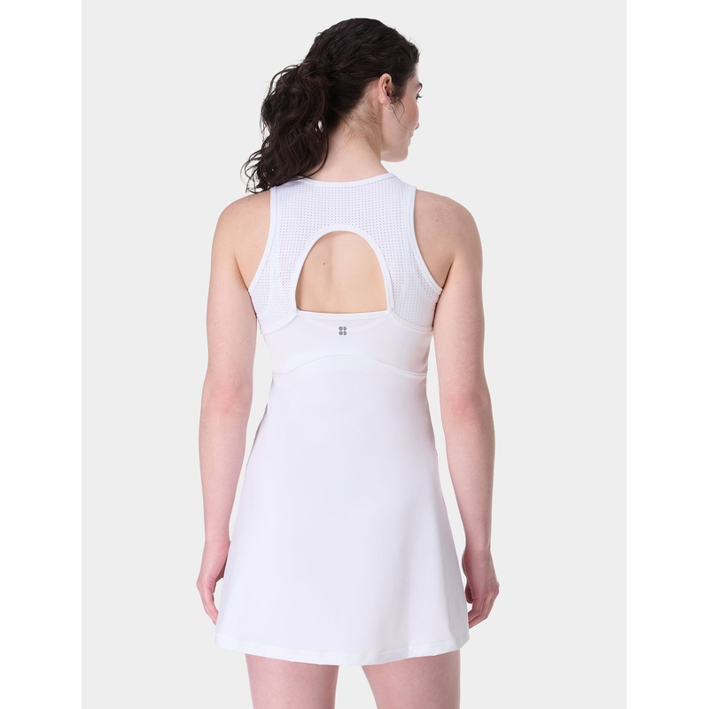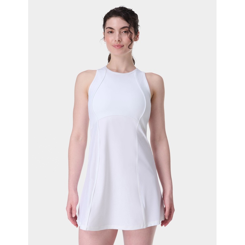 Swing into action with the Racket Tennis Dress, designed with moisture-wicking, quick-drying fabric and four-way stretch keeping you cool during every match. Its flared skirt, cut-out back, side slits, and contrast piping details add a bold, chic flair, while breathable mesh panels ensure you stay cool.