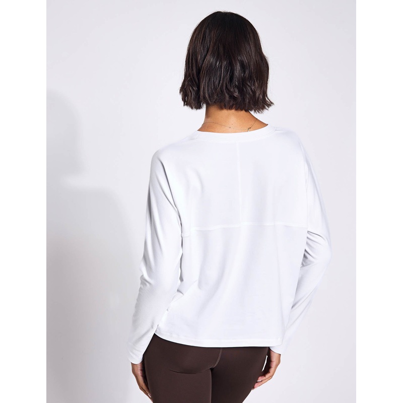 Feel comfort like never before in the ReSet Long Sleeve Tee, designed with moisture wicking and quick drying technology. The ultra-soft fabric and stretchy fit make it perfect for yoga, Pilates, or layering on casual days. Thoughtfully detailed with a back yoke and cover stitch seams, its the epitome of performance.