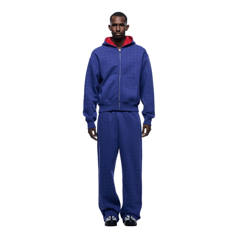 RHINESTONE LETTER ZIP HOODIE BLUE