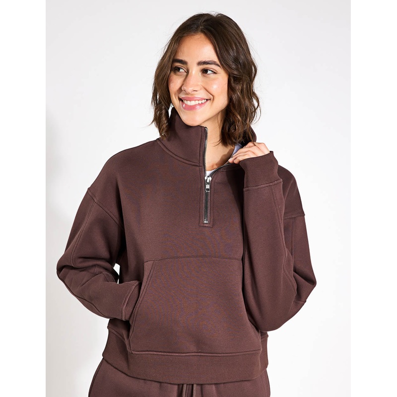 Showcase your off duty flair with the chic Rihanna Sweat quarter zip, featuring dropped shoulders and a sleek funnel neck. With a handy kangaroo pocket and a subtly cropped cut, its your go-to for standout style and comfort.