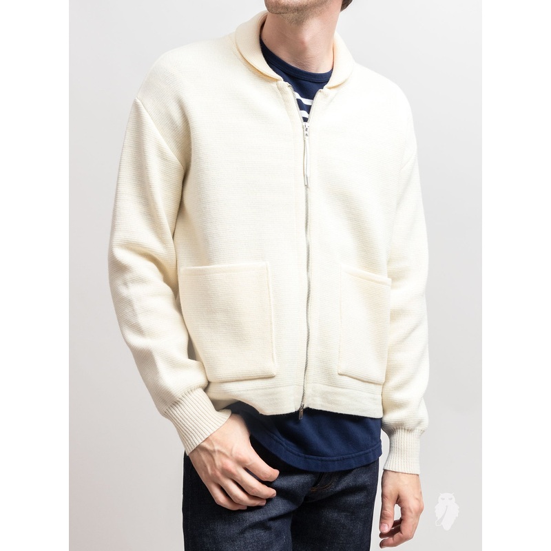 • The Roscoff zip sweater from Arpenteur is a classic Fall layering piece with just the right amount of French flair. The sweater receives its name from the port commune of northwestern France, where locals seamstresses specialize in chunky milano knit style sweaters for cold winds. Woven from thick wool yarn with ample structure, the tailored sweater is fitted with an Eclair double zipper and features a sophisticated shawl collar design with two convenient patch pockets at the waist.