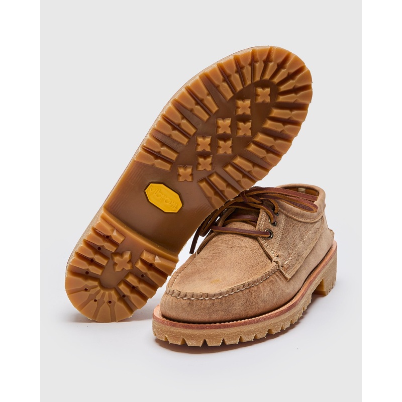 • Hand-sewn in Maine, USA, the Rugby Blucher is a rugged take on an Ivy classic. Produced in small batches, the shoes feature CF Stead’s Waxed Elk leather, a full-bodied, heavy-weight moose hide with natural scars and scratches throughout. Built for longevity, the shoes are outfitted with Vibram 100 honey lug outsoles and are fully resolable, crafted with Blake stitch construction. Finished with an Ortholite Comfort footbed, metal eyelets, and leather cord laces.