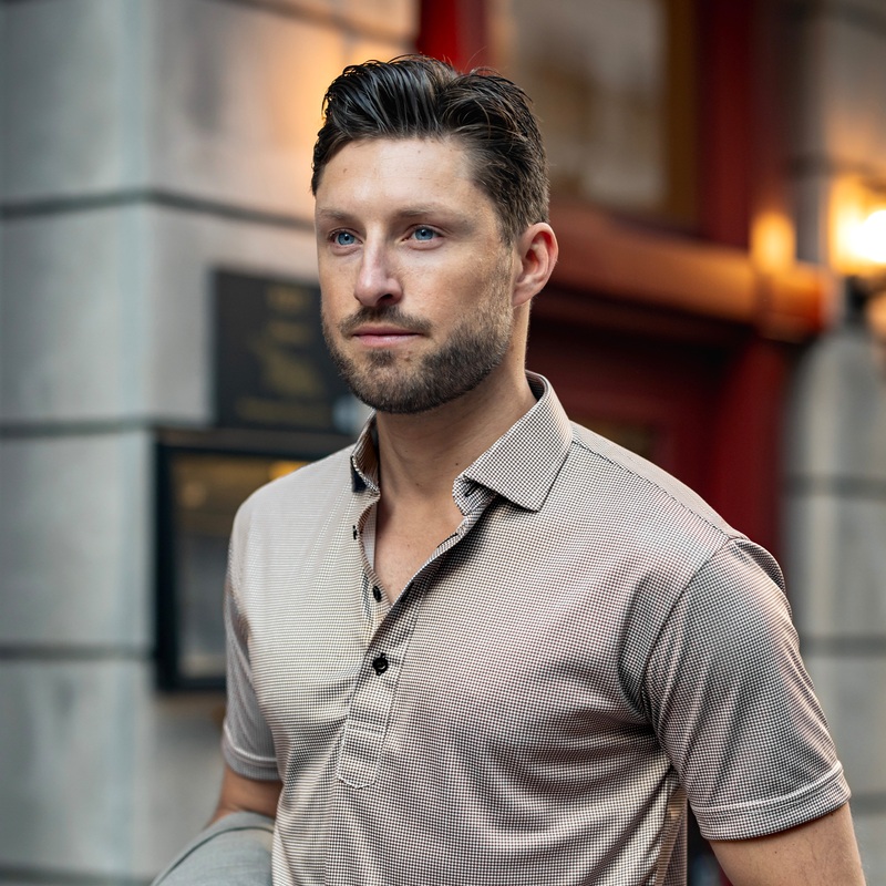 The versatileSemi-Spread Collar Polo. Woven for comfort and designed for style. This shirt pairs a formalsemi spread dress collarwith an extra comfortable, 4-way stretch, short-sleeved polo. The semi-spread collar has all the benefits of ourever popular English spread collar with a streamlined size and built to accommodate a larger tie knot