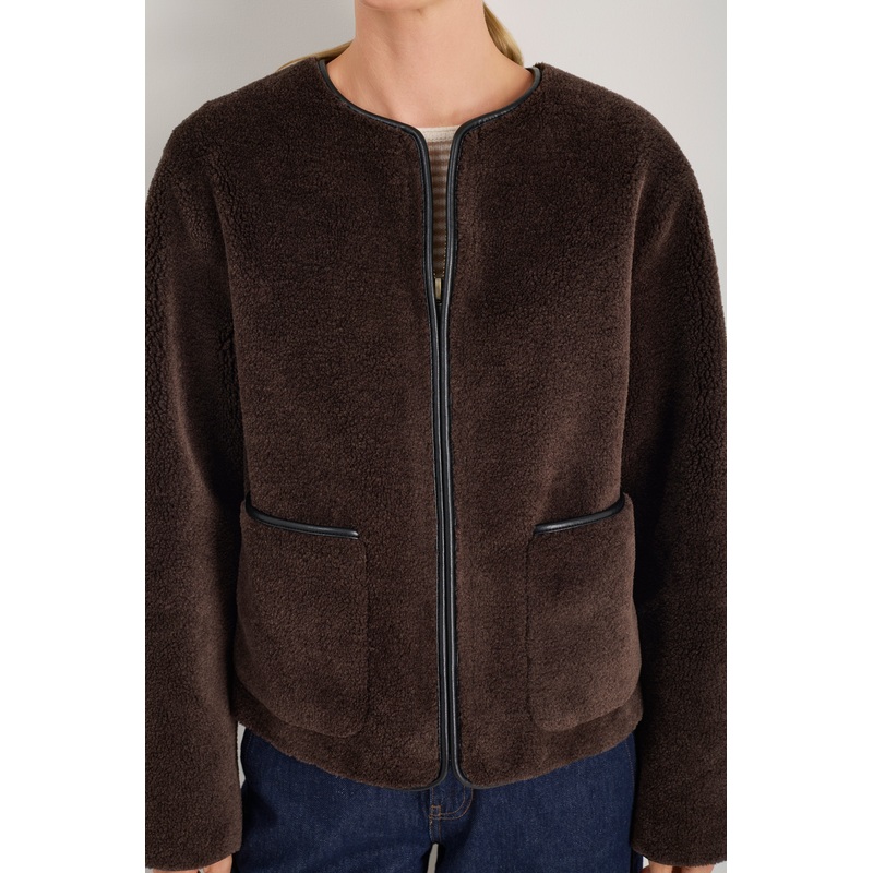 • Our favourite new borg jacket in a gorgeous cocoa colourway.