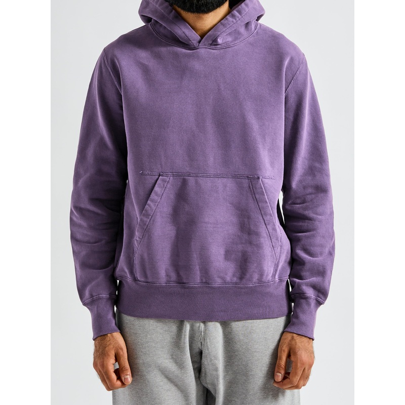 • Crafted entirely in-house, Remi’s Special Finish sweaters are garment dyed, stonewashed, and treated with an enzyme bath to replicate a signature 1960s worn-in look and feel. Made in Japan using heavyweight cotton fleece, the hoodie features a relaxed, boxy fit with ribbed gussets and a large kangaroo pouch pocket. Over time, the hoodie will fade and change, developing a unique, vintage patina with each wash and wear.