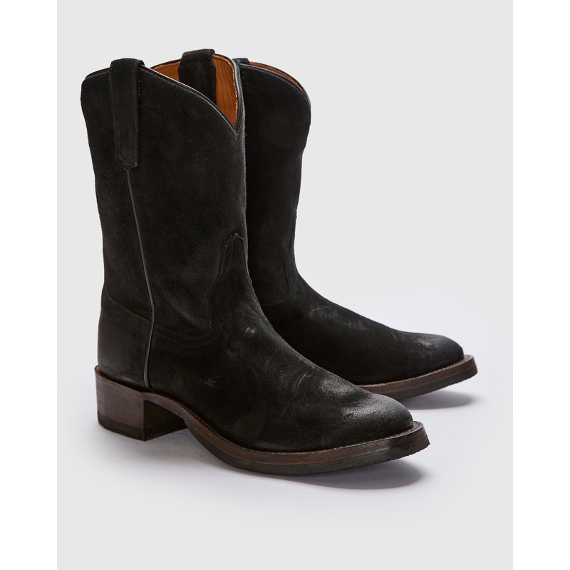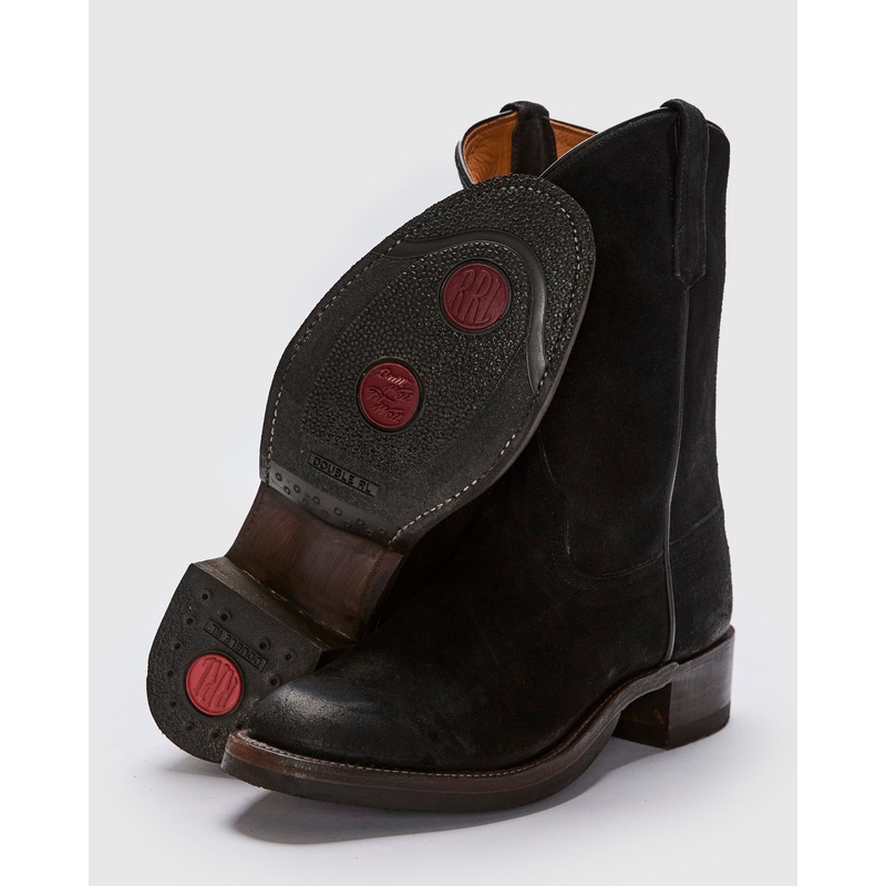 • The Walker Boot is a signature western style from RRL made using all-American vegetable-tanned leather. Handmade in a small Texas factory that has been constructing boots for over 160 years, these boots are built on a vintage shoe last from the 1940s that provides extra room in the heel for comfort and flexibility during riding. The boots are hand-lasted and reinforced with steel for a lifetime of durability, and feature custom-branded RRL soles, fully stacked leather heels, and a rubber heel tap.